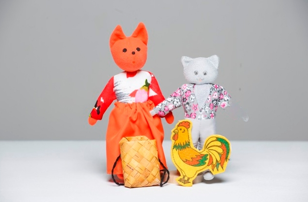 В комплекте 3 куклы с петельками: лиса с туеском, петух и кот.