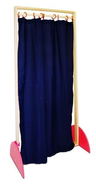 Односекционная ширма с деревянным каркасом и шторой устанавливается на ножки. Предназначена для постановки спектаклей и проведения мероприятий.