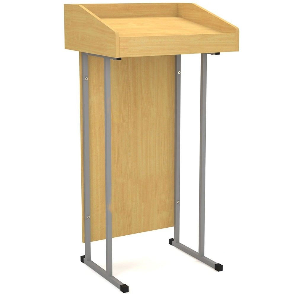 Напольная трибуна для актового зала или кабинета в школе располагает двойными опорами из труб круглого сечения, переходящими в полозья.
