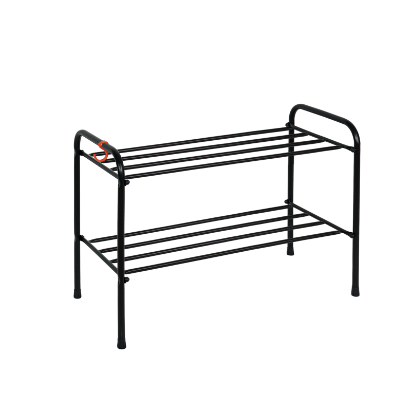 Полки сооружаются из труб (d 10 мм и 16 мм), расстояние между ярусами составляет 215 мм. 4 конца дугообразных ножек оснащаются заглушками из пластика, сталь обрабатывается полимерно-порошковым покрытием.