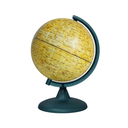 На глобус нанесена физическая карта Луны, на которой отражены лунные моря, материки, озера, кратеры, борозды, долины, морские гряды, горные хребты и прочие особенности рельефа спутника. Также отмечены места посадки космических станций.