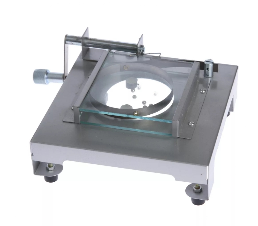 Между двумя стеклянными перегородками находится около двух десятков металлических шариков, моделирующих молекулы вещества, и две пластмассовые шайбы - модели броуновских частиц, размеры которой в несколько раз превышают размеры шариков.