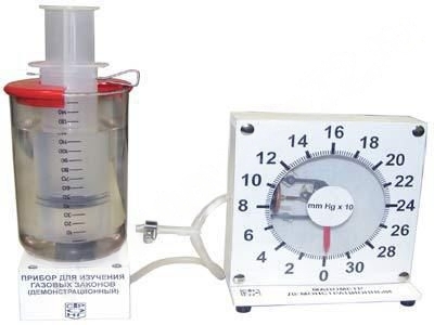 Прибор дает возможность проверить законы Шарля, Бойля-Мариотта, Гей-Люссака, а также уравнение состояния идеального газа.