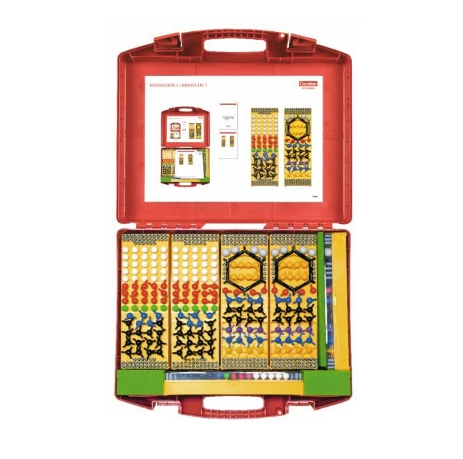 - 5 наборов "Моделирование молекул. Неорганические соединения", в каждом наборе - 25 атомов водорода, 5 атомов хлора, 15 атомов кислорода, 5 атомов азота, 14 атомов углерода, 60 гибких соединительных стержней;