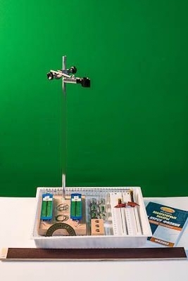 - пружина № 2 на планшете с миллиметровой шкалой, с сантиметровой оцифровкой (с крючком для подвешивания грузов, пластиковым указателем растяжения по шкале и пластиковым стержнем для крепления в муфте штатива), жёсткость 10±2 Н/м - 1 шт.,
