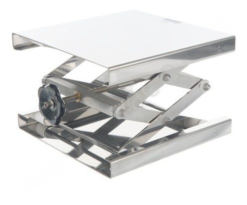 Подъемный столик позволяет менять уровень, на котором расположены приборы или их части. Расстояние корректируется за счет Х-образных опор под столешницей. Они складываются и раздвигаются вращением винта. Механизм упрощает монтажные и лабораторные работы.