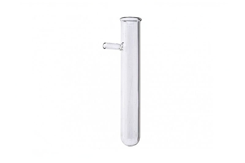 Пробирка для опытов с датчиками используется в химической лаборатории. Прозрачные стенки дополняются боковым отводом.