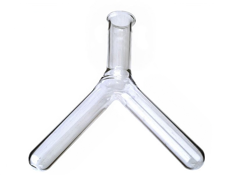 Пробирка используется в химической лаборатории для наблюдения за реакцией 2-х веществ в замкнутом объеме. Прозрачная посуда с разветвлением на 2 колена присоединяется к датчику объема газа.