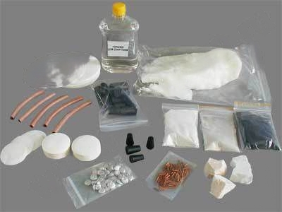 Комплектность: алюминий гранулированный, горючее для спиртовок, крахмал, медь, парафин, уголь активированный, крошка мраморная, карбид кальция, фильтры, пробки.