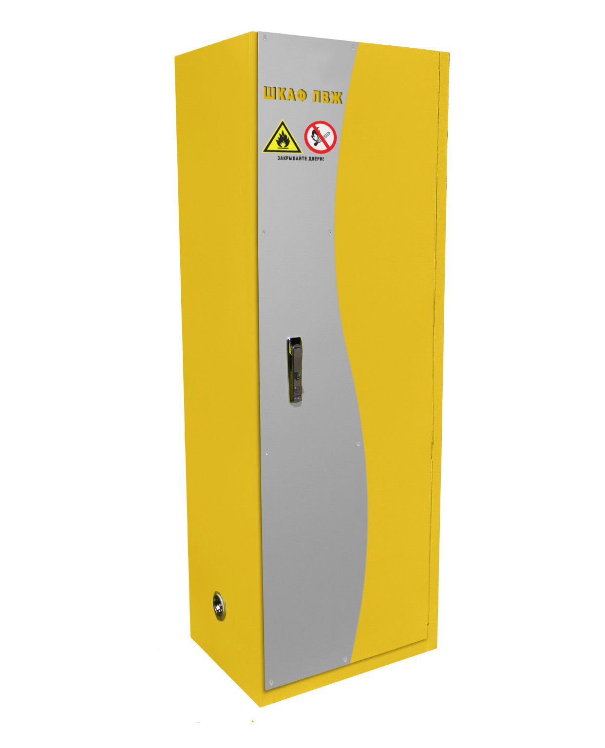 В шкафу хранятся химические реактивы. Специальная мебель выдерживает 10 минут воздействия огнем. Замок на одностворчатой двери блокируется при закрывании рукой.