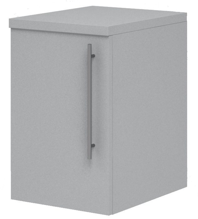 Изделие может комплектоваться тремя выдвижными ящиками на телескопических направляющих или сплошной дверью с ручкой с правой или левой стороны.
