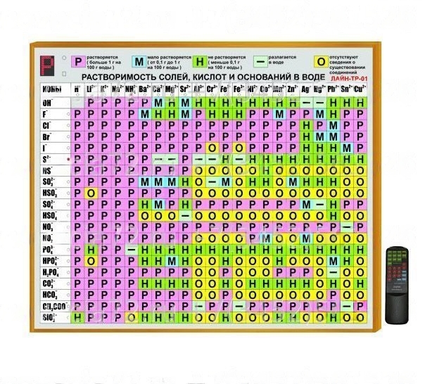 Электронная таблица Растворимость солей, кислот и оснований в воде