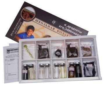 Состав коллекции: мох сфагнум, торф, торф брикетированный, торфопесчаная смесь, торфоперегнойные горшочки, активный уголь (активированный уголь), масло легкое, газ, торфяной воск, этиловый спирт, карболовая кислота, масло креолиновое, деготь, пек.