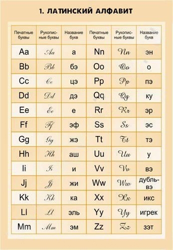 - Латинский алфавит;