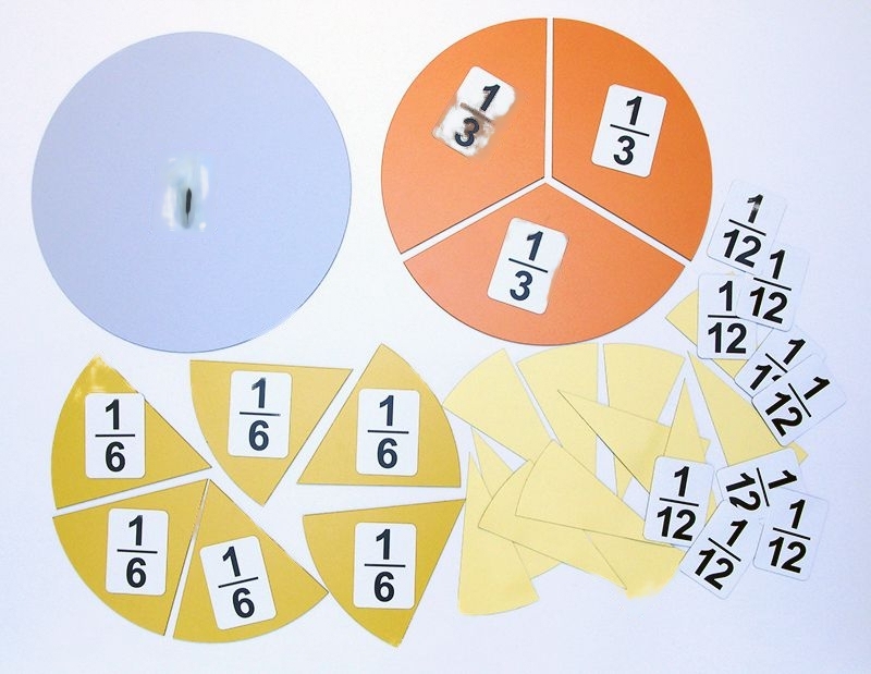 В комплекте 44 магнитные карточки: 22 цветных в виде равных частей круга и 22 белых с указанием величины дроби. Набор предназначен для наглядного изучения принципа деления дробей. Может использоваться на магнитной доске.