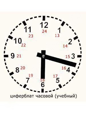 Выполнен на картоне с двусторонней ламинацией, снабжен двумя подвижными стрелками (часовая и минутная), движение которых не взаимосвязано. Цена деления шкалы циферблата – 1 мин. Время обозначено арабскими цифрами, при этом внешний круг (числа от 1 до 12) демонстрирует обозначение времени до полудня, а внутренний круг обозначает время после полудня (числа от 13 до 24).