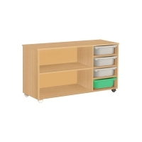 Подкатная система хранения может использоваться в ДОУ и начальной школе, детских досуговых центрах, а так же в игровых детских комнатах.