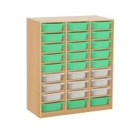 Конструкция разделена на 3 вертикальных секции, которые оборудованы выдвижными контейнерами двух видов: малый (размер 295х395х140 мм) и большой (размер 300х420х230 мм).