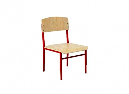Детский стул на телескопических ножках соответствует ГОСТу. Рассчитан на возраст с 1 года до 10 лет, меняет высоту. Это сборная конструкция из круглых труб (d 14 и 18 мм, толщина 1.5 мм) с 4-мя ножками и перекладиной. Передний край фанерного сиденья (ДхШ 310х310 мм) и верх спинки (ДхШ 310х120 мм) сглажены.