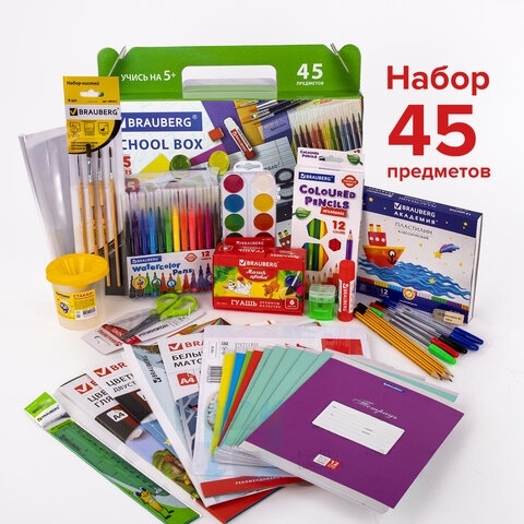 Набор школьных принадлежностей в подарочной коробке BRAUBERG "НАБОР ПЕРВОКЛАССНИКА", 45 предметов, 880122