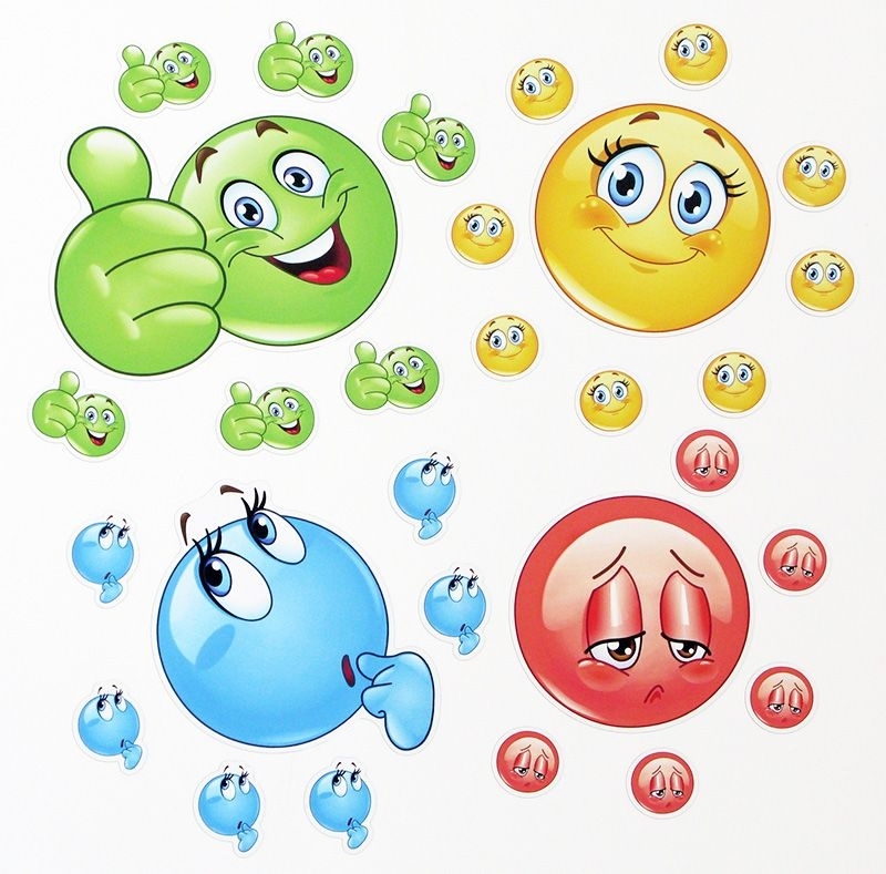 Предназначен для оценивания работы детей на занятиях в школе и детском саду. В наборе четыре вида смайлов: зеленый означает отличную оценку работы, желтый - хорошую, синий - удовлетворительную, красный - неудовлетворительную.