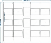 - 2250х2000 мм, 5 рядов, 15 карманов А3: 12 горизонтальных по бокам и 3 вертикальных в центре,
