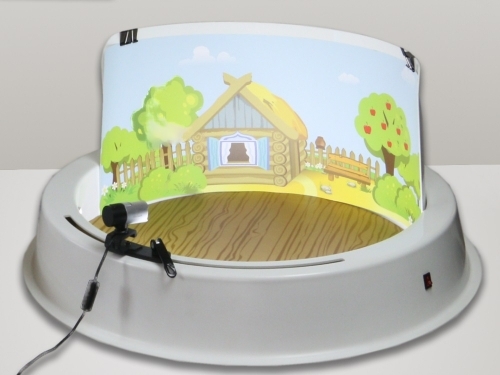 Основа для кукольной анимации представляет собой круглый манеж, который комплектуется задником и видеокамерой. Камера фиксируется на округлых перилах и может перемещаться по дуге. На круглую плоскость устанавливается фон и объекты съемки.