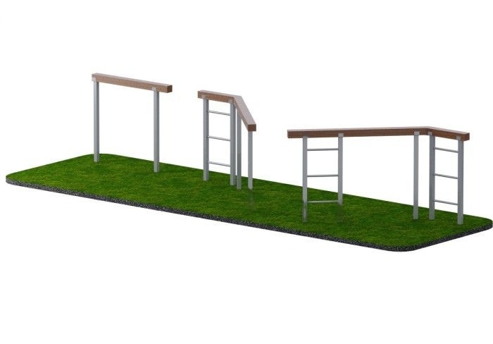Спортивное оборудование бетонируется на глубину 500 мм или без заглубления в грунт фиксируется на специальном уличном покрытии. Установка предназначена для тренировки равновесия, силы рук, ног и пресса.