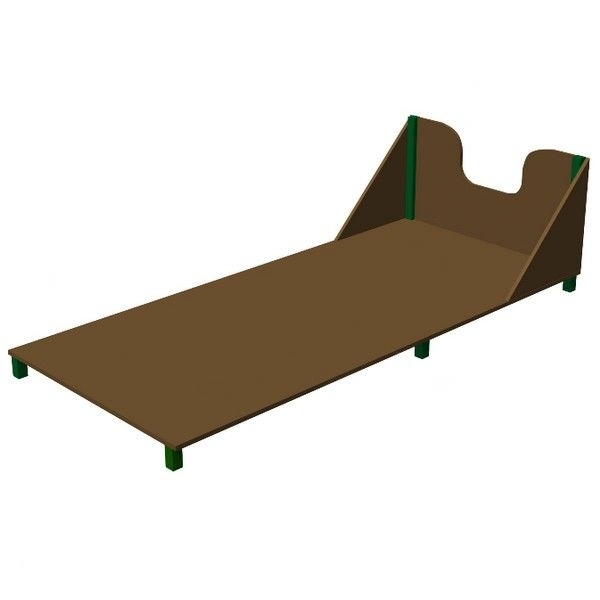 Металлический каркас оснащается амбразурой и горизонтальным настилом. Металл обрабатывается полимерно-порошковой краской. Фанера с антисептической грунтовкой покрывается водной акриловой краской и лаком.