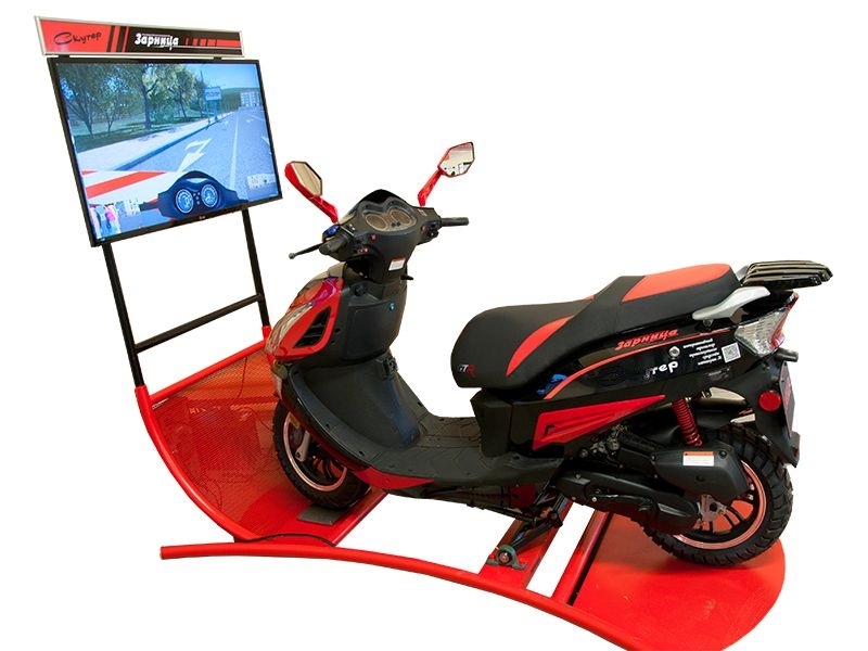 Мопед устанавливается на платформу с экраном ЖК диагональю 42 дюйма. Широкоформатный дисплей помогает моделировать фронтальный обзор при имитации движения.