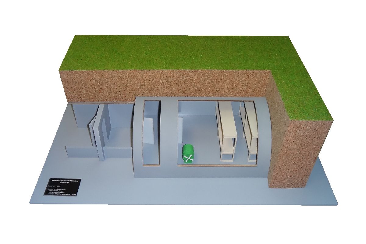 Неразборный макет для кабинета ОБЖ и НВП демонстрирует строение быстровозводимого убежища, рассчитанного на 25 человек.