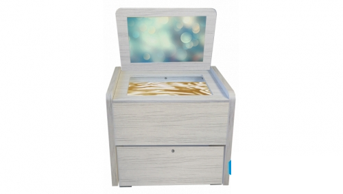 1. Интерактивная световая песочница. Со встроенным зеркалом из акрила и ящиком для инструментов. Защитная крышка служит столешницей. Цвет и яркость подсветки меняется. В комплекте кварцевый песок для игр и рисования, щеточки, деревянные фигурки.
