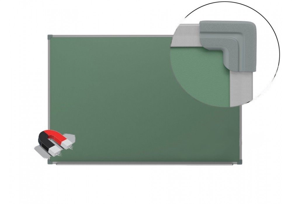 Стальной лист обрабатывается антибликовым покрытием, закрепляется в металлическом профиле с закругленными краями и заглушками из пластика. Рабочая область для записей мелом удерживает магниты. На классной доске могут вывешиваться наглядные пособия.