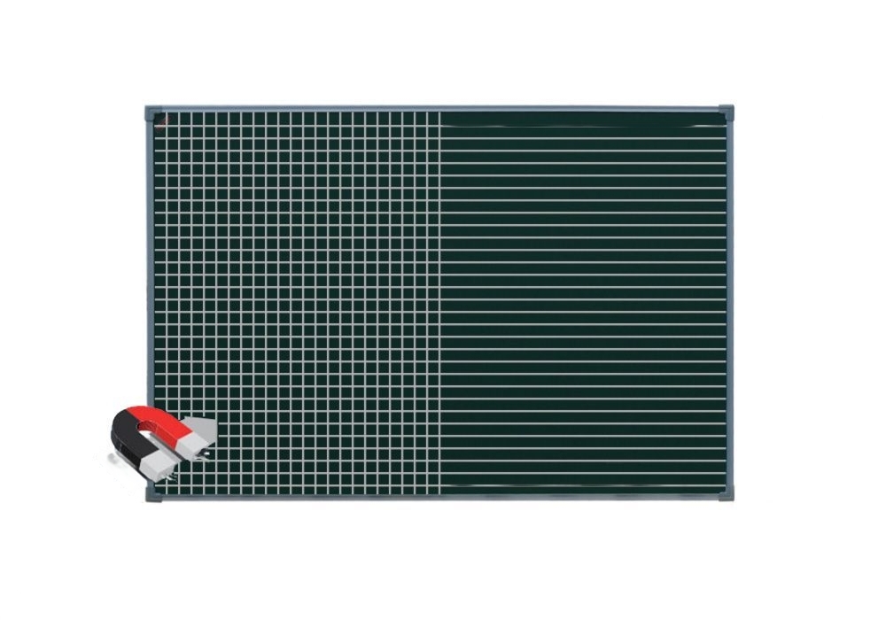 Светлые линии отчетливо видны на темном фоне. Рабочее поле удерживает магниты, поэтому педагог может закреплять на доске плакаты, карточки и другие наглядные пособия.
