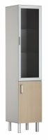 3 отделения наверху прикрываются стеклянной дверцей, содержимое нижнего яруса скрыто глухой дверью. 1- или 2-створчатая дверь дополняется фурнитурой.