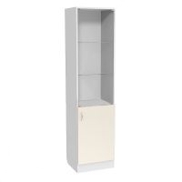 Верхний отсек мебели представлен двумя полками за стеклянной дверью (1- или 2-створчатой) на защелке. В нижним отделении 1 полка. Глухая 1- или 2-створчатая дверь выполняется в ярком цвете.
