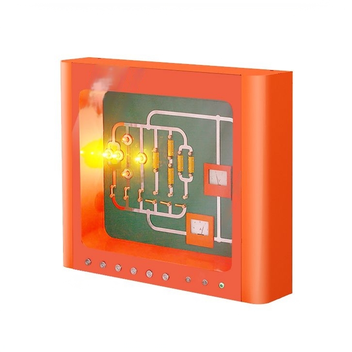 Экспонат предназначен для уроков физики. Демонстрационная модель знакомит с понятием электрического тока, помогает раскрыть темы: напряжение, электрическая цепь, коммутация, проводимость. Школьник регулирует напряжение источника питания. При переключении ключей на участках цепи меняются показания амперметра и свечение ламп.