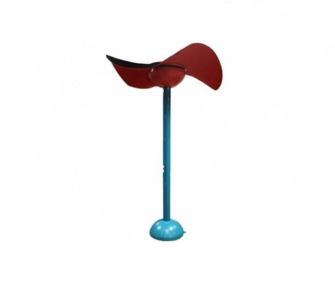 Электронный блок помещен в неподвижную колонну с тканевым элементом наверху. Школьник вращает ручку блока, ткань раскручивается и поднимается. Волны вращаются медленнее полотна.