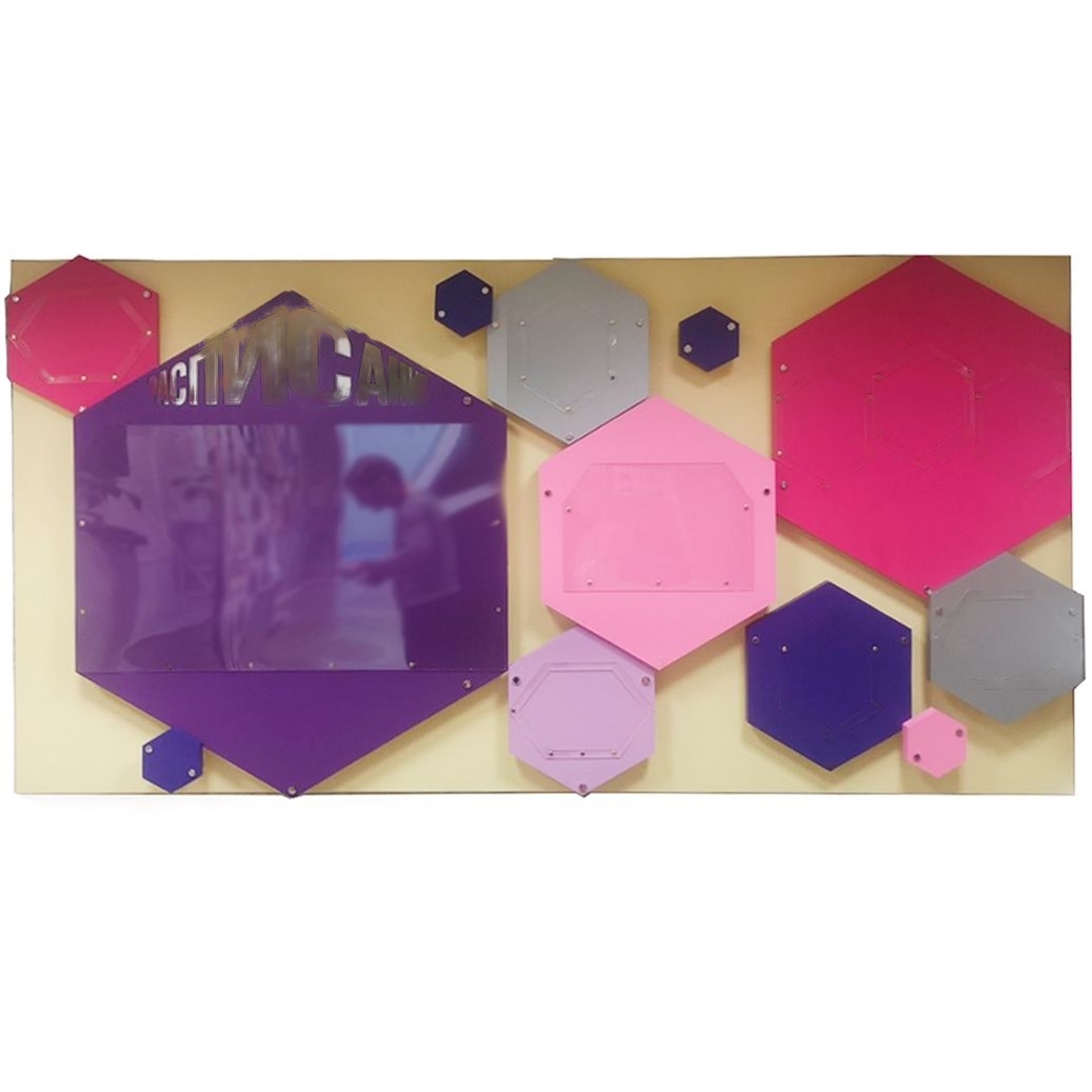 На фигурные элементы наносятся изображения и текст. Разнообразие форм и размеров модулей дает простор для фантазии: блоки стенда стыкуются в разные формы – блоки, цепочки, фигуры. Элементы освещения выделяют панели на фоне остальных деталей интерьера, облегчают восприятие.