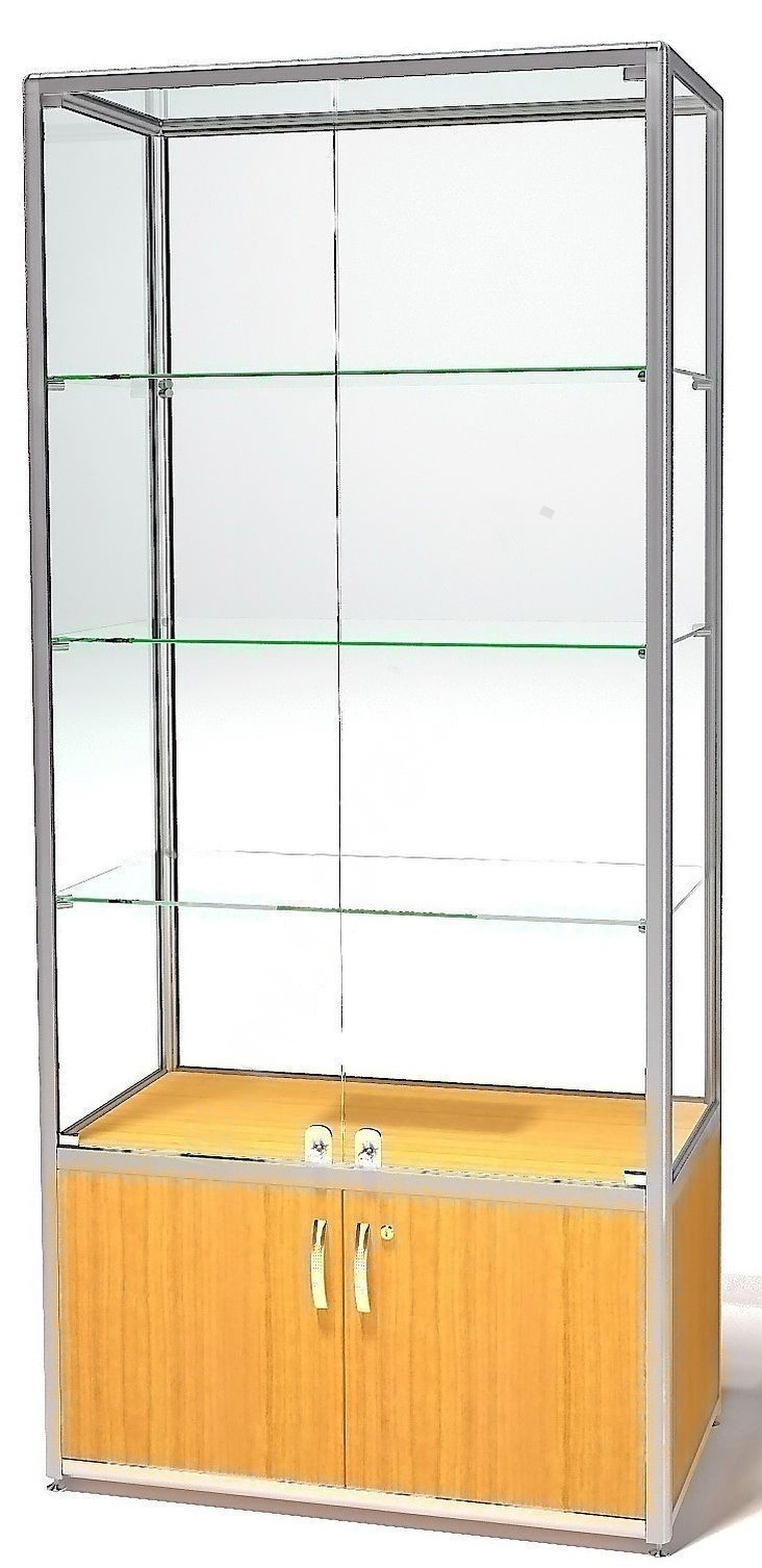 Витрина оснащена прозрачным демонстрационным модулем с 3 полками и распашными дверцами с замком, а также нижним отсеком для хранения. На полках можно расставлять кубки, выкладывать медали и наградные значки.