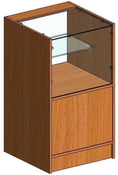 Демонстрационная витрина оснащена крышкой из ЛДСП и стекла. Поставляется в разобранном виде.