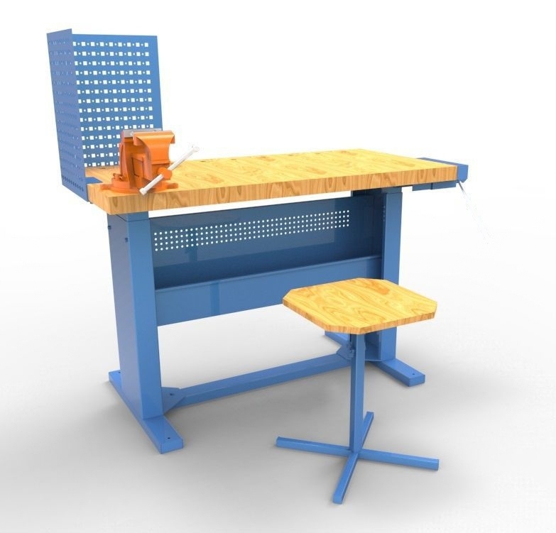 Основание и защитный экран поставляются в синем цвете. Стол используется учащимися 4-11 классов для сборочных, столярных, слесарных, монтажных и других видов работ.