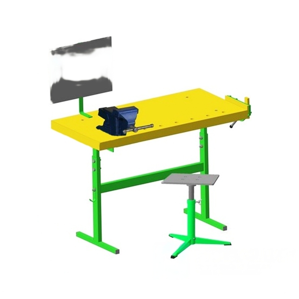 Основание поставляется в зеленом цвете. Предусматривается крючок для портфеля. Комбинированный стол используется учащимися 4-11 классов для сборочных, столярных, слесарных, монтажных и других видов работ.