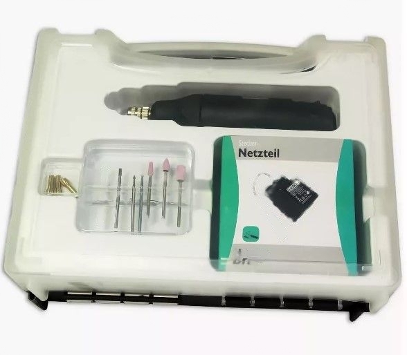 В наборе Pebaro несколько насадок для того, чтобы работа была удобной и неоднообразной. Весь комплект помещается в пластиковый бокс.