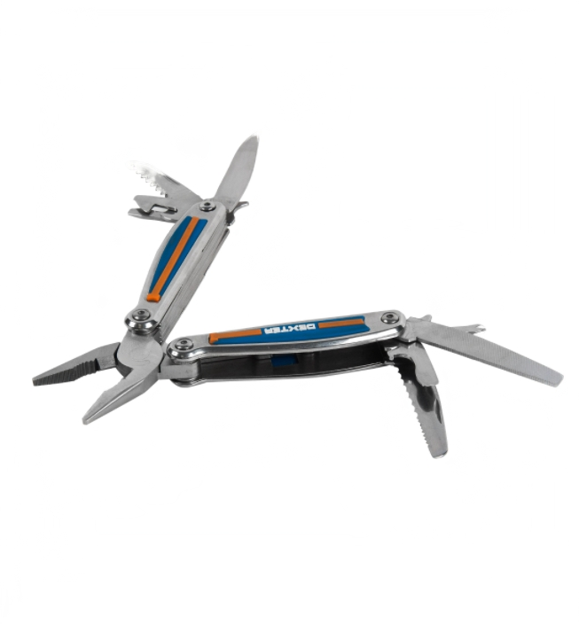 Изделие совмещает в себе нож, пилу, штопор и пассатижи. Рельефные лезвия работают с разнообразными материалами и складываются в единый корпус.