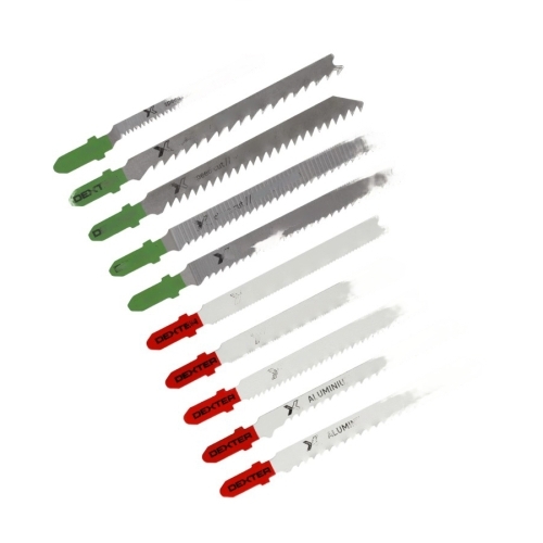 В комплекте 10 пил, 5 из которых предназначены для работ по дереву, остальные 5 - для металла. Подходят для материалов толщиной от 0,5 мм до 50 мм.