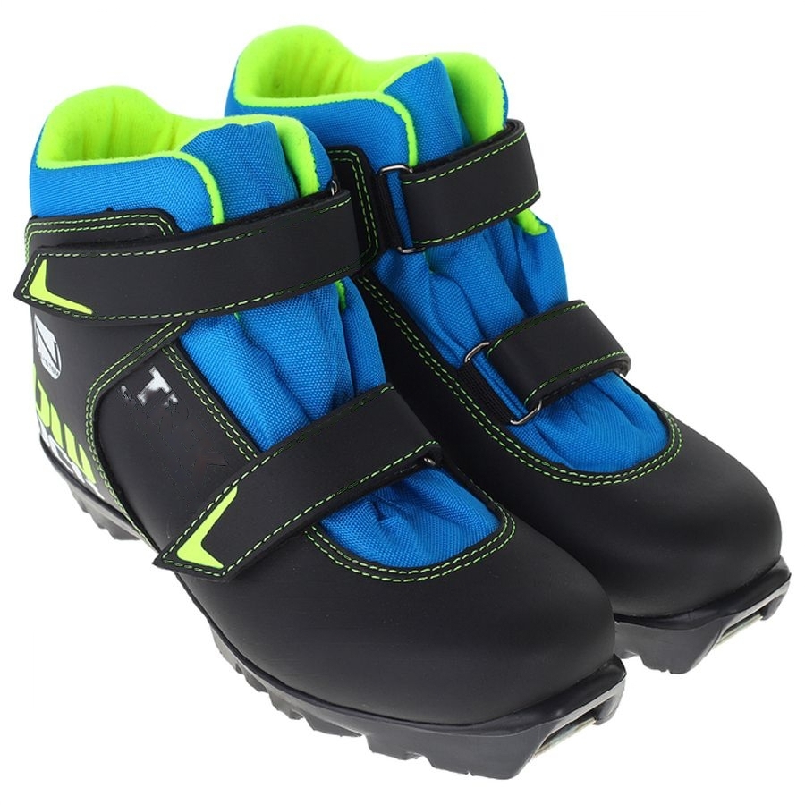 Детская спортивная обувь подходит для креплений SNS. Лыжные ботинки со специальной пропиткой защищены от ветра. 3-слойный внутренний материал отводит влагу и удерживает тепло. Черная обувь украшается цветными элементами, логотипом. У ботинка мягкий кант и язык. Система фиксации стопы представлена 2-мя ремнями на липучках, благодаря чему переодевание занимает минимум времени.