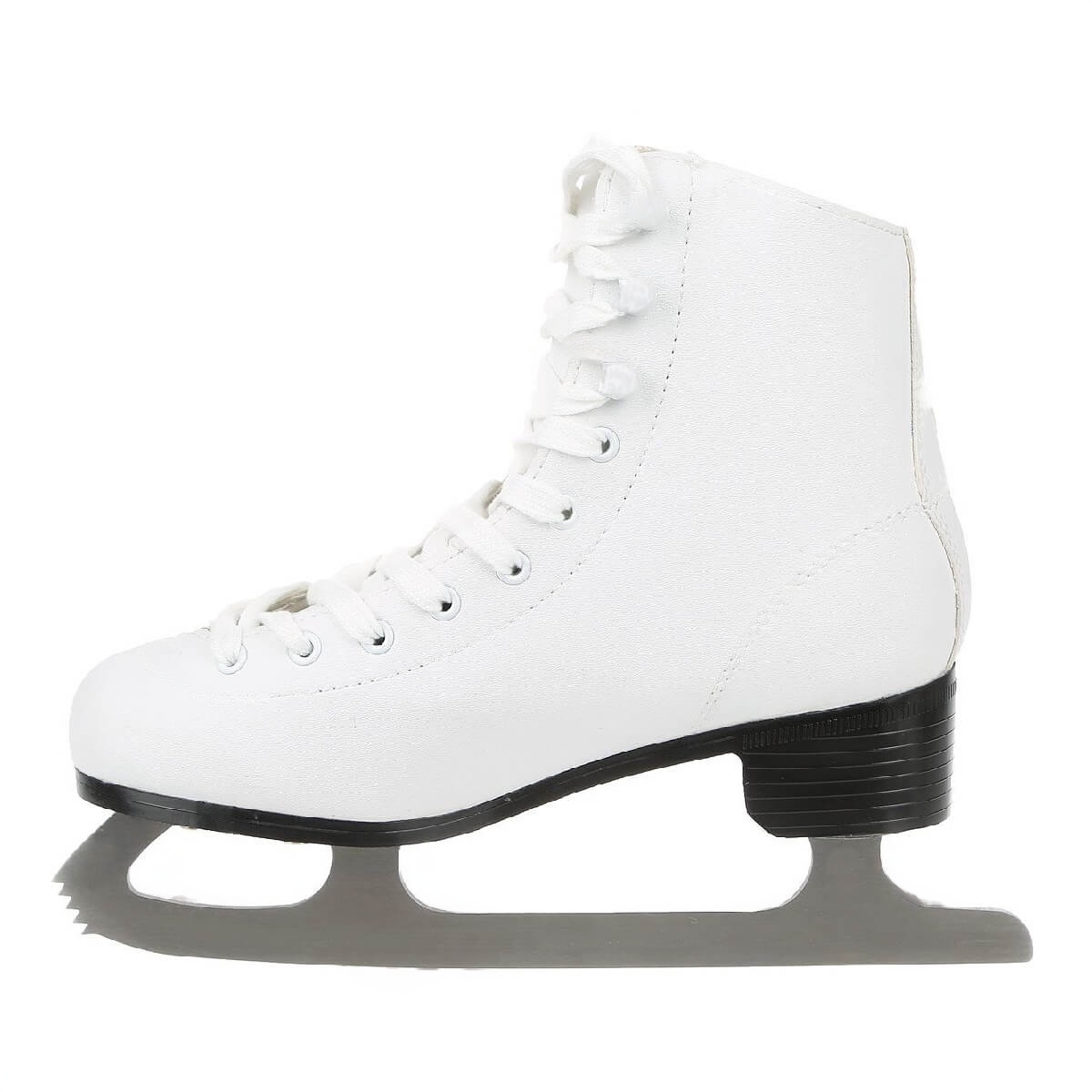Коньки с фигурным нержавеющим лезвием используются во время уроков физкультуры. Ботинок с поддержкой голеностопа представлен в классическом виде, со шнуровкой. Морозостойкая кожа защищает спортивную обувь от холодов. Изделие украшено логотипом. Анатомический ботинок с толстым язычком оснащен твердой пластиковой подошвой.
