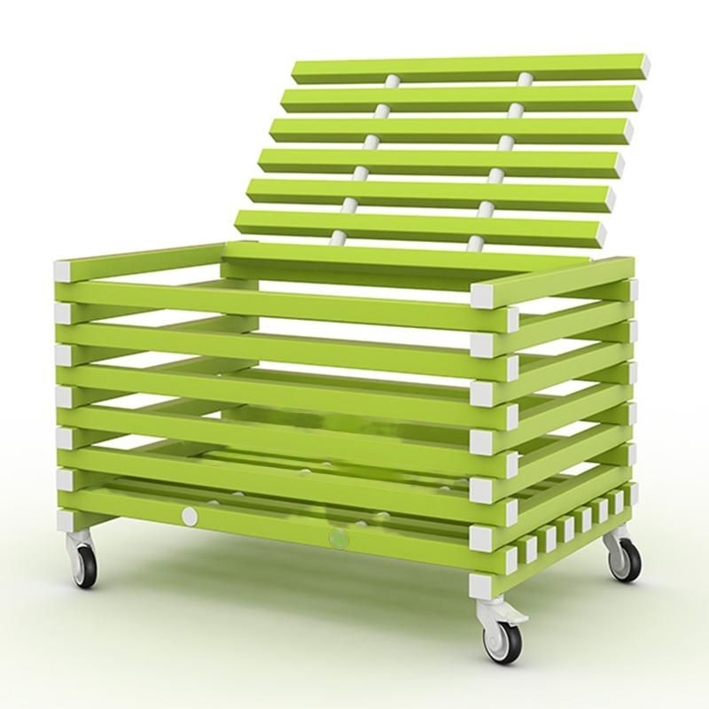 Корзина с откидной крышкой служит для хранения спортивных принадлежностей. Например, в ней может сушиться акваинвентарь. Перекладины из жесткого ПВХ не выгорают на солнце. Внутри не скапливаются бактерии, грязь или влага. Корпус стоит на 4-х колесах.