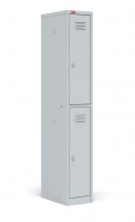 Конструкция состоит из 2-х ярусов с одностворчатыми дверцами на замках. В каждом отсеке предусмотрена перекладина для вешалок и крючки.